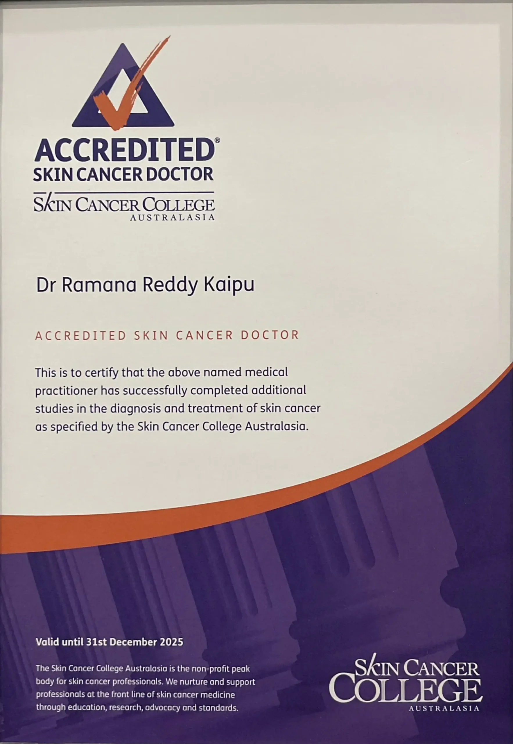 Dr. Kaipu is known for his patient-centric approach, focusing on safety, thorough care, and personalised treatments. His dedication to ongoing education and training reflects his passion for delivering high-quality care in skin cancer detection, treatment, and aesthetic medicine.
