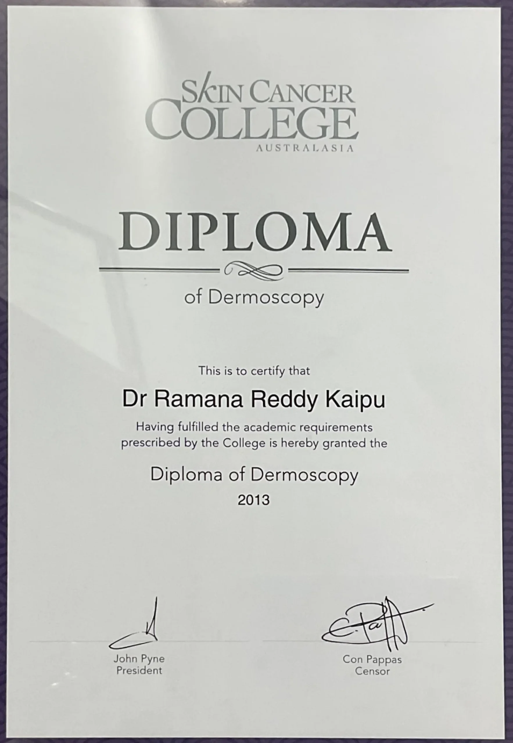 Dr. Ramana Reddy Kaipu is a distinguished medical professional with a focus on skin cancer medicine, dermatology, and aesthetic medicine. He earned his Bachelor of Medicine & Bachelor of Surgery (MBBS) from Osmania Medical College, India, in 2002. Following his graduation, Dr. Kaipu gained extensive experience in various healthcare settings, including the North Cheshire NHS Trust in the UK and Westmead Hospital in New South Wales, Australia.